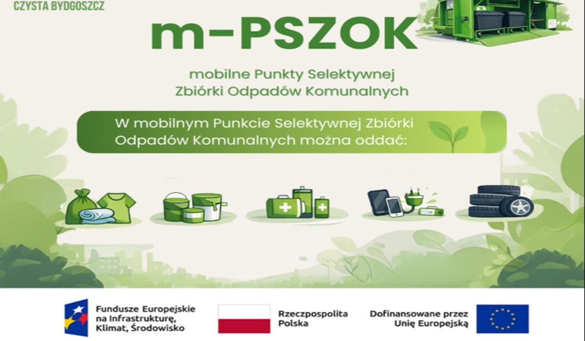 Mieszkańcy Bydgoszczy będą mogli skorzystać z Mobilnych Punktów Selektywnej Zbiórki Odpadów Komunalnych (m-PSZOK). To wygodne rozwiązanie pozwala bezpłatnie oddać niewielkie odpady z gospodarstw domowych, które nie powinny trafiać do zwykłych pojemników.